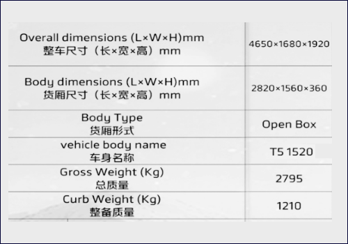 | Overall Size: | 4650×1680×1920 |